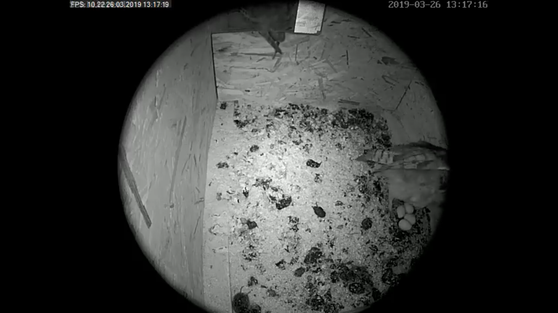 Tatsächlich hat es sich um ein neues Weibchen gehandelt. Die beiden Eulen haben ein neues festes Paar gebildet und heute war das erste Ei zu sehen. Somit ist diese Brut außergewöhnlich spät im Jahr, womit die Jungen erst im Dezember das Nest verlassen werden. Es bleibt abzuwarten, wie viele Eier gelegt werden.